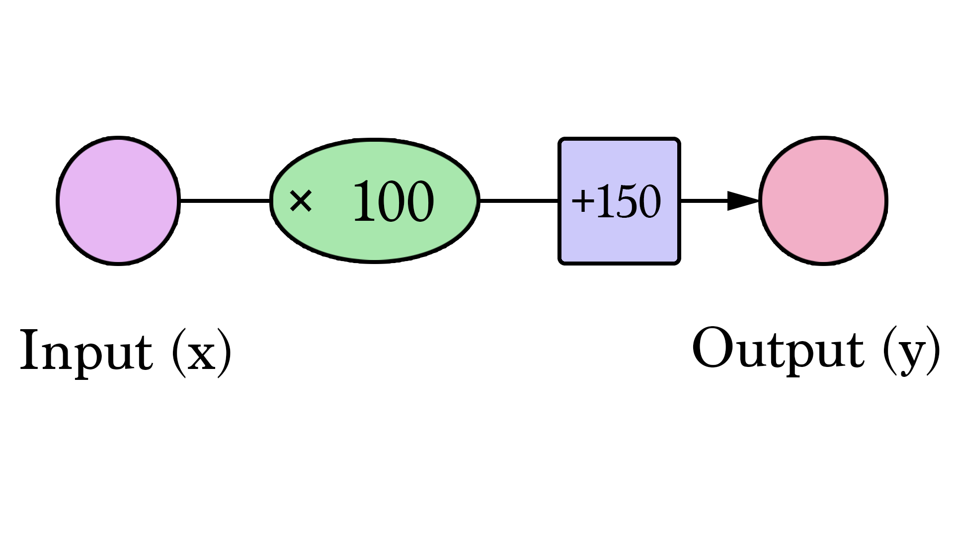 We can generalize it by saying that a neural network with one input and one output (*spoiler warning:* and no hidden layers) looks like this: